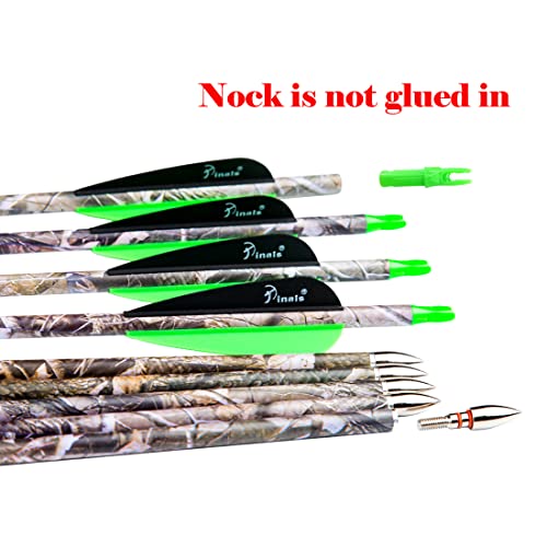 Safe&Durable:Shaft made by pure precision carbon and better construction,more stronger,hard to split even shoot on tree,include 12pcs extra aluminum insert & Adjustable Nock,Nock without glue fixing,the orientation of the nocks can be adjusted to fit for recurve bow and compound bow.