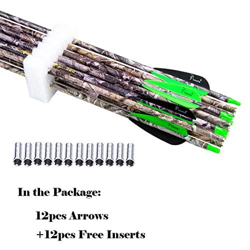 Specifications:Straightness:+/- 0.003 Spine 300 340 400 30Inch Shaft suit for 40-75 pound compound recurve bow hunting shooting target,pack of 12pcs arrows and replacement insert