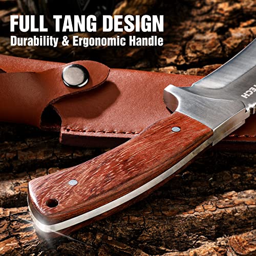 Swiss+Tech Hunting Knife with Leather Sheath, 11-5/8 inch Fixed Blade Full-Tang Construction, Ergonomic Wood Handle Knife for Outdoor Survival, Camping, Hiking, Brushcraft, Gift for Dad Husband Men