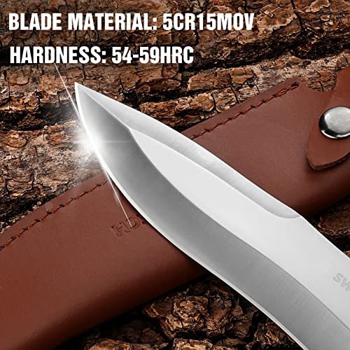 【Leather Sheath & Wood Handle 】The high-quality leather sheath helps to keep the sharpness of the blade for longer, which includes a secure button and a belt loop that enables you to attach it to your belt securely. An ergonomically designed handle is easier to hold and provides a firm grip for more control. Besides, the lanyard hole on the handle can fix the knife easier.
