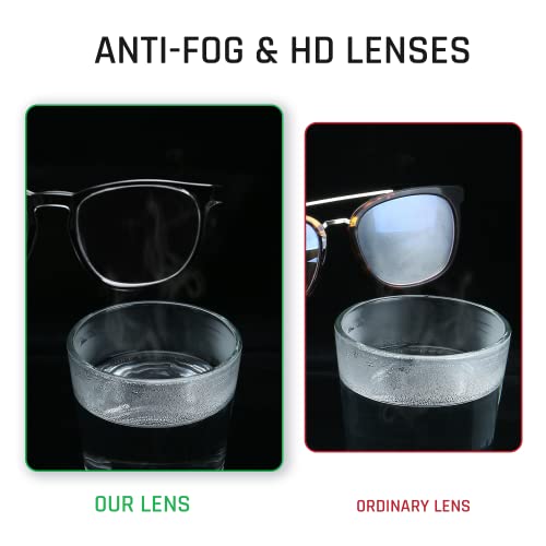 THE CLEAR LENS WITH ANTI-SCRATCH COATING. The durable polycarbonate lens has a hard appearance and can meet the ANSI Z87.1 standard, so the protective glasses is clearly visible.