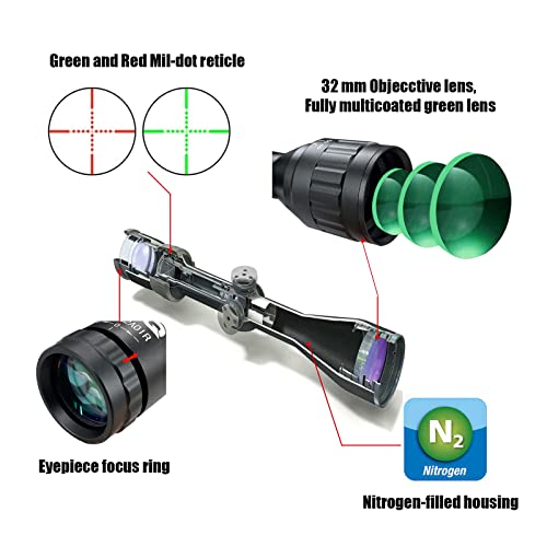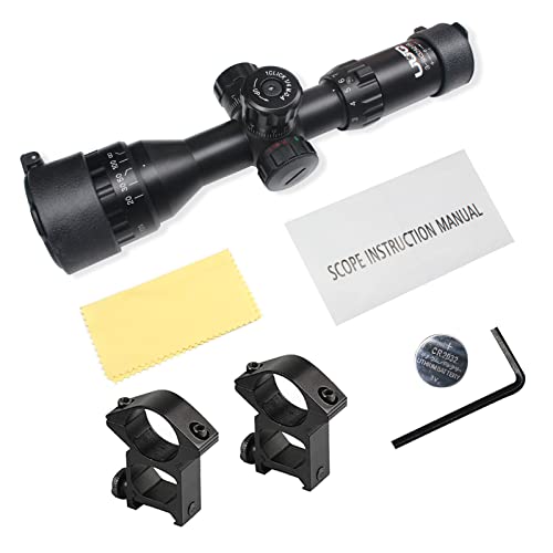 UUQ 3-9×32 Tactical Rifle Scopes,Front AO (Parallax Adjustment) Red Green Illuminated, Mil-dot Reticle,Locking/Hold Zero Turrets, High Profile Mount Rings (12 Month Warranty)