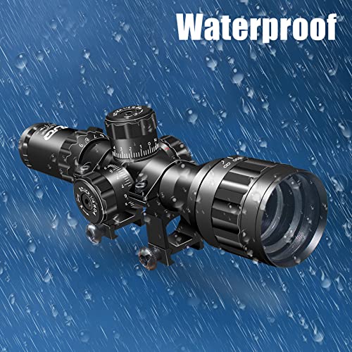 Magnified from 3X up to 9X for targeting out to 300 yards and beyond. AO(Adjustable Objective) from 3 Yards to Infinity provides increased accurate aiming image. Dual Red & Green illuminated Mil Dot Reticle with side 5 level brightness control is easier aiming in any environment.